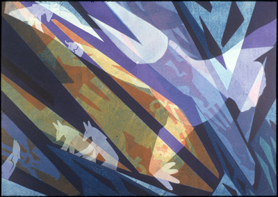 Collagraphs are made by printing a collaged surface that creates a relief surface with a variety of textures.