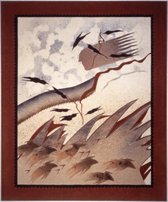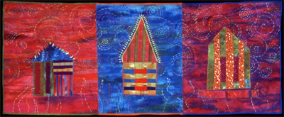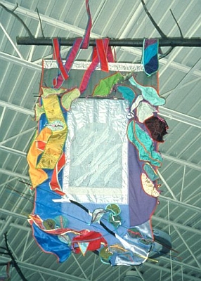 September is National Sewing Month! Here we feature artworks that include sewing as an important technique in their creation, often combined with other methods. The focus of these works are the elements of art (color, form, line, shape, space, texture, and value) and not simply the technique itself. However, the sewing technique itself is sometimes part of a statement as well: sewing has traditionally been assigned as "women's work" in many cultures. And the vast majority of these artworks are made by artists who are women. The range of sewing or stitching included in these artworks varies from being the main technique to barely visible stitching and appliqué used to embellish an artwork.