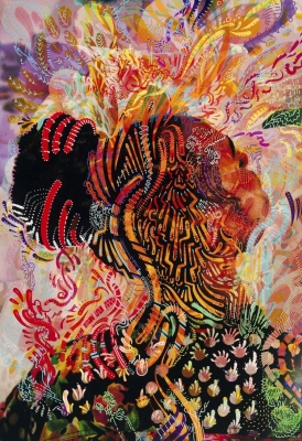 There is also a strong throughline of cultural diversity and inclusivity in this collection. For instance, the selected works of Moses Sun or Nikita Ares are composed of colorful and vibrant layers of abstract imagery that welcome a sense of belonging to any that approach them. In one essence the work can feel personal and poetic to a specific emotion, yet they can also offer moments of collective connection when sharing cultural meaning and value to the spectrum of colors that are so thoughtfully composed. My hope is that these artworks will speak to the Ferndale High School community at all walks of life, in all seasons, and act as a symbol of welcoming to all in the school for years to come.