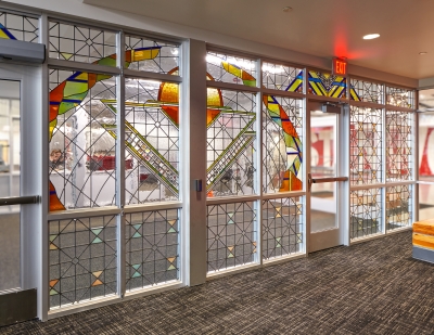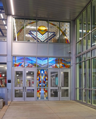 Glass artist Jack Archibald uses light to animate the colors and abstract shapes in his stained glass artworks. In his own words, "As a stained glass artist, I work with light. Glass is uniquely interactive with light, its transitions, its intensities, its colors. Throughout the day, a window constantly undergoes transformation. The changing light animates the glass."
