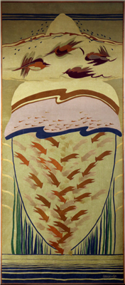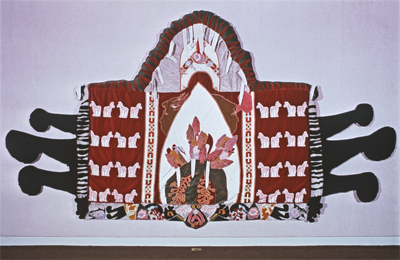 Montana-based artist Dana Boussard creates narrative-driven paintings, drawings, fiber works, and glass installations. Her works explore concepts of home, memory and spirituality. She received the Montana Governor's Arts Award in 1987. Boussard is a non-Native artist.