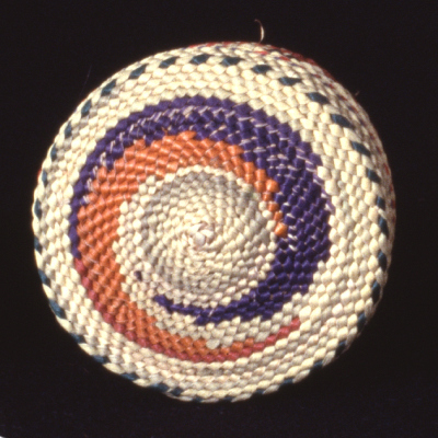 Round Basket (2) is part of a series of five colorful traditional baskets woven by Native American artist Lena Johnson. This artwork is part of Beyond Blue Mountains, a collection that was curated by late Tlingit (Native Alaskan) artist Jim Schoppert. It presents the work of Native American artists of diverse heritage, ideas, materials, and styles. The collection takes an in-depth look at the artists’ unique voices and interpretations of tradition.