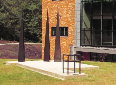 Washington artist Ken Lundemo (1931-2024) created sculptures combining wood, metal, stone, and ceramics. Raised and educated in Tacoma and Bremerton, Lundemo earned an Associate of Arts degree from Olympic College, in Bremerton, after serving four years in the U.S. Navy in the 1950s. He later returned to Olympic College to study ceramics in the 1980s. He also learned welding, woodworking, and stone carving over the years. His home and studio were located on twenty acres of woodlands in South Puget Sound, where he also kept a Japanese-style anagama (wood-fired) kiln.