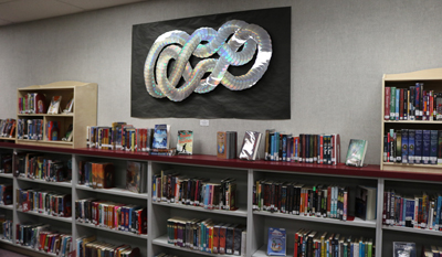 The interwoven composition of George Radebaugh's Lovers sculpture suggests the braided structure and never-ending loops of a lover’s knot. It was created using CDs (compact discs). The color and light of the shimmering CDs change with the viewer's perspective and suggest movement. This artwork is part of his body of CD sculptures showing “that beautiful work can be made with everyday materials.”