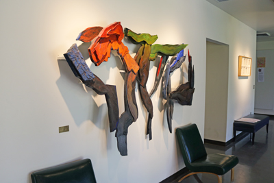 Olympia, Washington-based artist and teacher Ron Hinson (1934-2019) created abstract, three-dimensional, painted constructions. He explains that "it is a painting because colors, shapes and drawing with the brush are of greater importance than is the three-dimensional component."Born and raised in Ohio, Hinson graduated from Miami University in Oxford, Ohio. He worked in advertising in New York City before moving to the Pacific Northwest. He taught at South Puget Sound Community College and The Evergreen State College, both in Olympia, Western Washington.