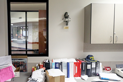 The Empire Builder is a playful sculpture by artist Christopher Pauley. Inspired by the nursery rhyme story of Humpty Dumpty, he created this piece using blacksmithing, welding, and repoussé techniques (hammering from the reverse side to create a design). Pauley notes, "I wanted to create a whimsical artwork that would express a new metaphor about a singular achievement. Imagine Humpty Dumpty, if you will, standing on top of the wall he built himself. The brick in his hand could represent civilization (empire), quality (or lack of), strength (or fragility), sense of accomplishment, wonder, yearning for a better world… etc."