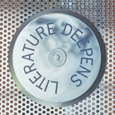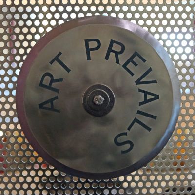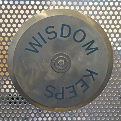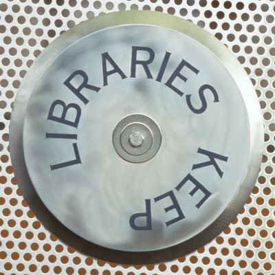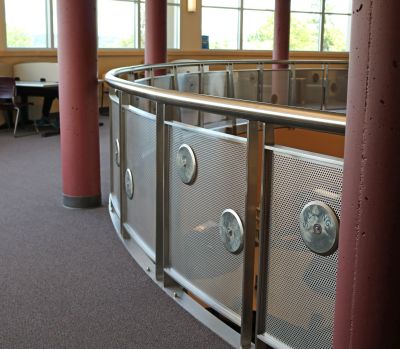 Part four of artist Karen Guzak's installation at South Seattle College, 'Word Discs' is comprised of a series of forty disc-shaped sculptural pieces. The discs are engraved with words and installed along the circular railings of the college library's central area. Guzak's five-part installation celebrates technology and the value of work. It is interactive in nature as students will walk through and around the artwork parts and read the artwork's words, and it is unified by the motif of circles and arcs in the artwork as well as in the students' paths around it.