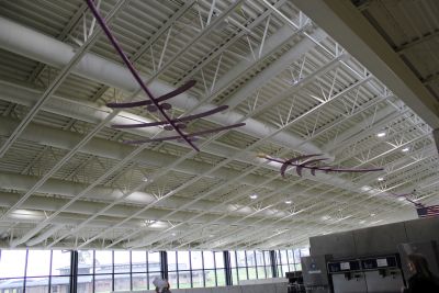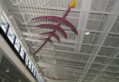 This piece is part of artist Garth Edward's group of sculptures installed throughout Green Hill School. The school provides education and vocational training for young male offenders as part of Washington's Juvenile Rehabilitation program. Using many different materials, Edwards fills the campus with imaginative and affirming imagery. A mural installed in the visitor's center shows the journey to learn a skilled trade and graduate. Painted aluminum sculptures of plant forms suggest growth and renewal. Concrete 'heads' look out over the grounds like protectors. Four aluminum benches at building entrances feature whimsical bear figures. Aluminum cutouts celebrate the many learning opportunities open to residents. Windows patterned with prisms cast rainbows into the interior spaces of the buildings. Together, these sculptures integrate into the facility and set a positive tone for resident rehabilitation.