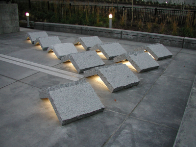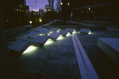 Brian Goldbloom creates site-specific sculptural installations in public spaces using mainly natural stone materials. His artworks interact with their surrounding environment and architecture and invite viewers to become active participants in the spaces they use.