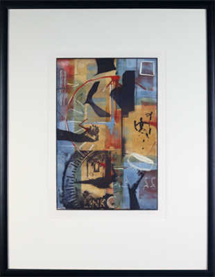 Link is part of a series of prints by artist Wendy Briggs that layers photographic and hand drawn elements. She combines images of common objects with cultural symbols and historic images. She notes, "In the process of putting together an image or images to make a print I look for the value or spirit in a thing. I believe all things have a spirit that touch or talk in their way. All that is required of us is a kind of openness, slowed pace, and attention."