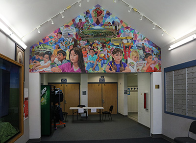 David Fichter is a Massachusetts-based community muralist. He engages the community with his work, working with students and teachers to create group murals that explore the unique aspects and diversity of their schools and communities.Fichter graduated at Harvard College in Cambridge, Massachusetts. His murals are found in the United States and other countries, including Armenia, Georgia, and Nicaragua.