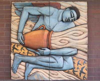 Seattle-based artist Steve Gardner creates relief and free-standing sculptures out of architectural terra cotta clay and other materials. His artworks often focus on the human figure, surface pattern, and a sense of story.