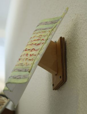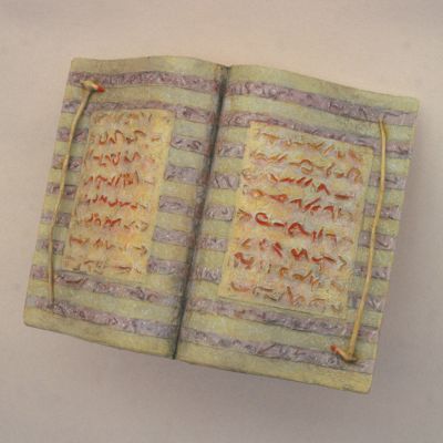 It Was Written is part of artist Morse Clary's series of mixed media sculptures based on the book form. This piece features what the artist called "pre-symbolic" marks. It explores the development of written languages as well as "our visual language of line, shape, texture, and color."