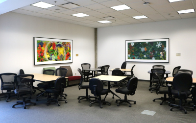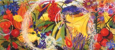 Stephen Yates created ten abstracted oil paintings for the library of the shared campus of the University of Washington at Bothell and Cascadia Community College. The ten artworks are divided into two categories: the four elements and the four seasons. This painting titled Summer is part of 'The Four Seasons Suite.' Motivated to create universally accessible and beautiful compositions, Yates chose to depict the seasons and the elements. He notes, "we all find that the changing seasons root our daily experiences, our traditions, our holidays and our mythologies."