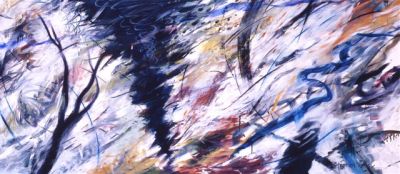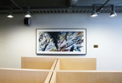 Stephen Yates created ten abstracted oil paintings for the library of the shared campus of the University of Washington at Bothell and Cascadia Community College. The ten artworks are divided into two categories: the four elements and the four seasons. This painting titled Air is part of 'The Four Elements Suite' which also includes Earth, Fire, and Water.