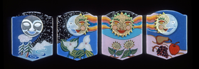 Winter Spring Summer Fall is a four-panel, fused glass wall sculpture by artist Richard La Londe. It uses natural and fantastical imagery to symbolize and represent the four seasons and the moods and feelings each of those seasons evoke. La Londe describes his art as "a window to the world that I find between dreams and reality... It is up to the viewer to provide the final interpretation."