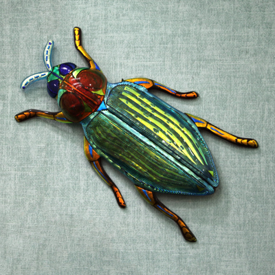 Blue Talon Bouquet is part of artist Katherine Holzknecht’s series of “Industrial Bouquets.” These mixed-media wall sculptures are comprised of different metal elements. The artist was inspired to create the series during the winter months. She describes that time as “that long season of cloudy, cool and dark days when flowering plants become a fond memory. I decided to make some permanent bouquet that could hang on the wall, and not be affected by the seasons and the weather.” The composition of this piece was inspired by the Olympic Torch.