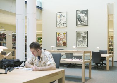 John Feodorov is one of the eight contemporary Native American artists featured in the Gallagher Law Library. Meat Vision is from a series of six mixed media artworks that explore issues of identity, sovereignty, and cultural heritage. Feodorov states "I eat meat. I'm sorry. A Navajo without meat in his mouth is starving."