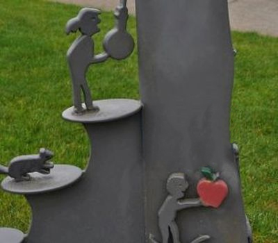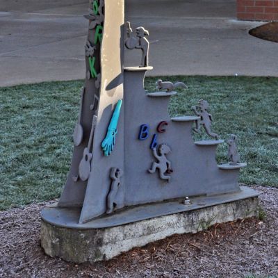 Christopher Pauley's sculpture Moments of Discovery represents innovation, development, and play.