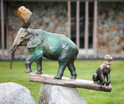 Eastern Washington artist Brad Rude creates narrative sculptures that feature various animals in playful, symbolically rich compositions. He notes, "I portray animals in situations that mimic our own lives. The animals are a stand in for us."Rude studied at the Maryland Institute College of Art and at Central Washington University in Ellensburg. He lives and works in Walla Walla, Southeastern Washington.