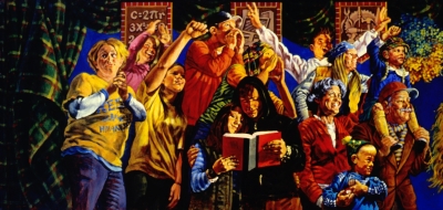 Terry Furchgott creates richly colorful figurative paintings, murals, and installations that explore the dynamics of human relationships and communities.