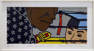 Celebrated artist Roger Shimomura creates thought-provoking paintings, prints, and performance pieces. His art practice investigates identities and stereotypes, especially as a person who was born and raised in the U.S. and is Asian American.