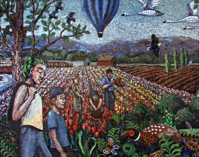 Husband and wife artist team Carl Bryant and Sandra Bryant create handmade mosaic artworks. They describe their work as celebrating "relationships between humanity and our environment, our human connections, how our experiences intertwine, our feelings over time and of the moment."