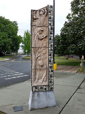 Buckner modeled the six workers in individual plaster sections, three for each side. Rubber molds of these sections were made by his sculptor son, Matthew Buckner. The Apprenticeship Education Center’s faculty at South Seattle College's Georgetown Campus then cast the pillar on-site in limestone-colored cement.
