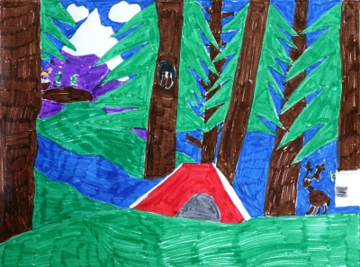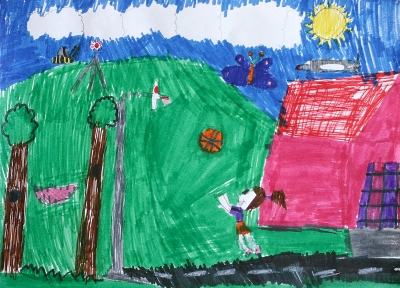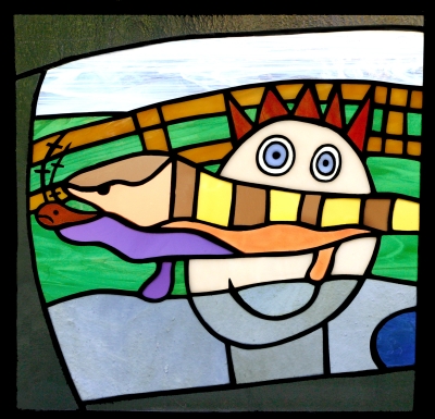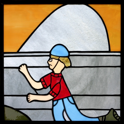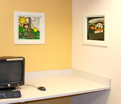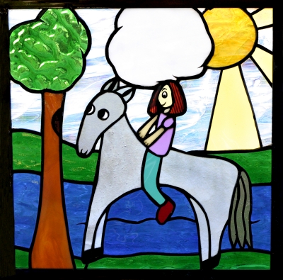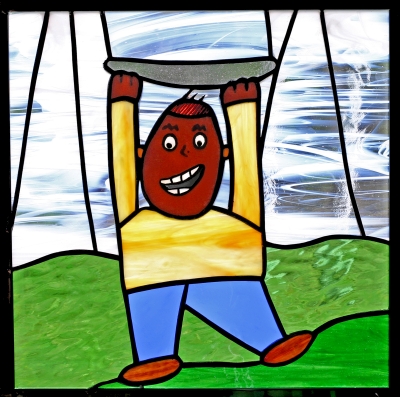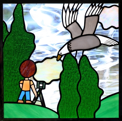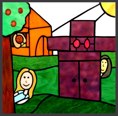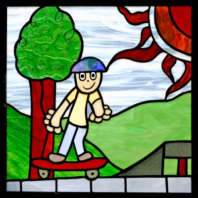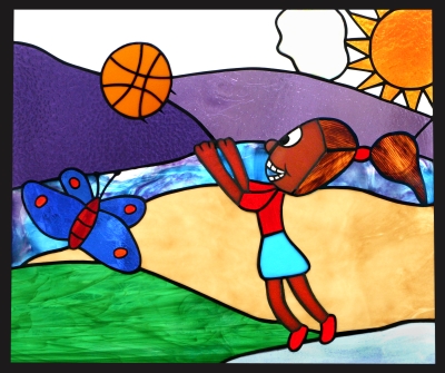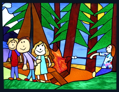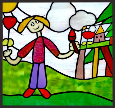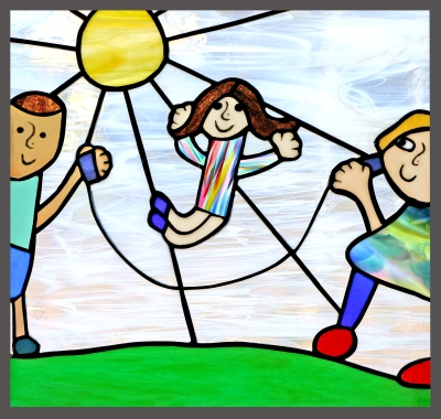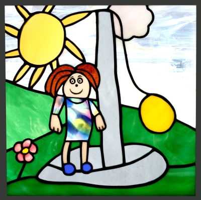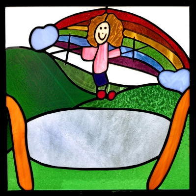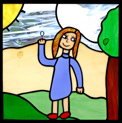 Artist Julie Prather worked with the students of Fryelands Elementary in Monroe, Northwest Washington, to create the ‘Favorite Things I Like to do Outside’ stained glass artwork. The twenty-one windows are found throughout the school. Prather worked with the Art Selection Committee to identify the theme “favorite things I like to do outside.” Teachers then asked students to create drawings on that theme and each student submitted one drawing. Prather chose twenty-three drawings and reincarnated them into the twenty-one stained glass window panels. The final artwork shows children camping, kite-flying, playing sports, blowing bubbles, fishing, riding a horse, and more. By including students, the community at the school feels a strong connection to the finished artwork.