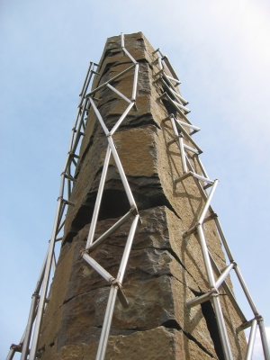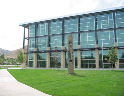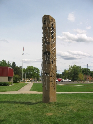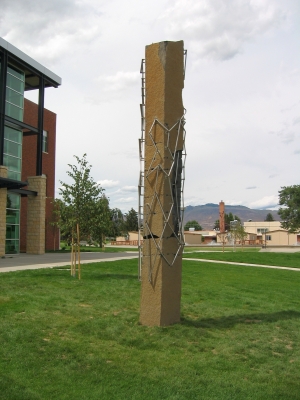 Artist John Young highlights the interaction between man and nature with a fragmented basalt "stitched" together, a metaphor for "healing" adjacent to the Allied Health Building at Wenatchee Valley College.