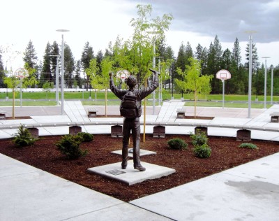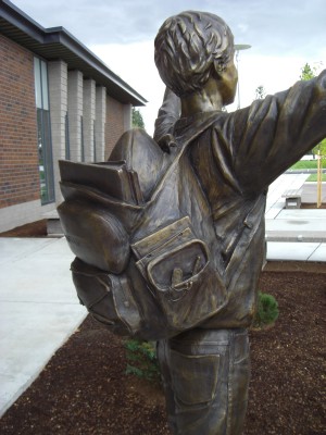 John Patrick Jewell's bronze sculpture of a young boy extending his arms represents the joy in learning.