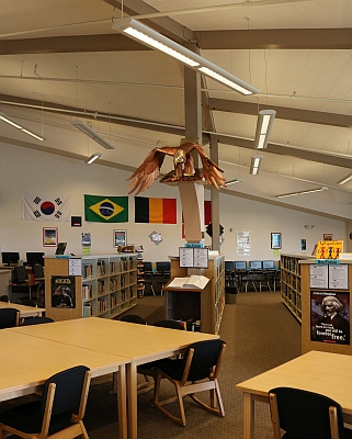Artist Paul Buckner created Eagle Spirit for Washington High School in Tacoma, Western Washington. The life-size sculpture portrays the majestic birds that Buckner first saw and heard while serving on a U.S. Coast Guard buoy tender boat in southeast Alaska. It soars overhead and is "a real attention grabber."