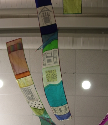 Spokane-based artist Louise Kodis uses the interplay of fabric sheen and texture with ambient light to activate Liberty Middle School's library.