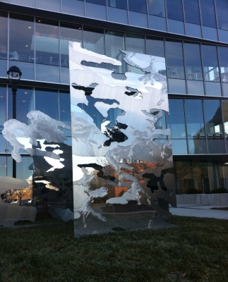 Spokane-raised artist Jim Hodges created this stainless steel sculpture to explore new perceptions. The varied surfaces, from mirrored to matte, alter the surrounding landscape through playful, reflective illusion. This work is dedicated to Hodges' mother, Ramona, who died shortly before this work was made.