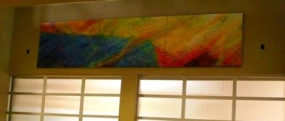 Stephen Yates' "Favorable Currents" captures the often unseen underwater world that plays such a key role in the Puget Sound region. His mural-scale painting suggests moving currents, fish, and seaweed.