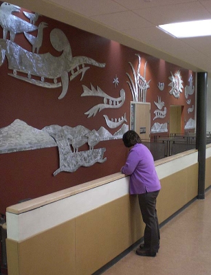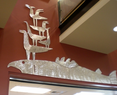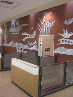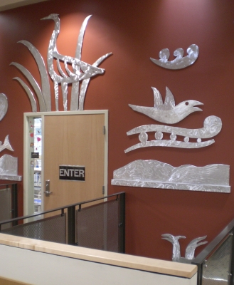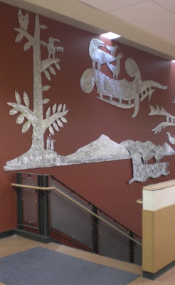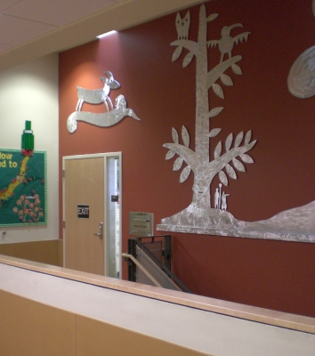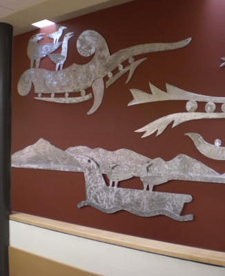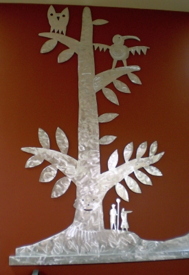 Paradise is a folk-themed, cut aluminium, relief sculpture by Garth Edwards. It is meant to inspire wonder and spark the imagination. Both real and fantastical versions of wildlife in the Columbia River Basin are featured. The area is home to White Bluffs Elementary in Richland, Southeastern Washington. The local art selection committee at White Bluffs met over several months, beginning in December 2007. The committee established criteria that included the environment, the history of the area, whimsy, and education.