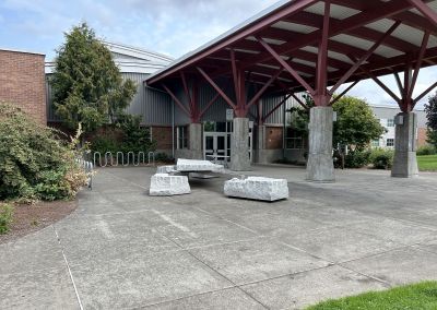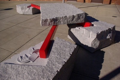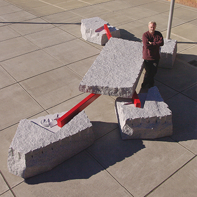 Brian Goldbloom creates site-specific sculptural installations in public spaces using mainly natural stone materials. His artworks interact with their surrounding environment and architecture and invite viewers to become active participants in the spaces they use.