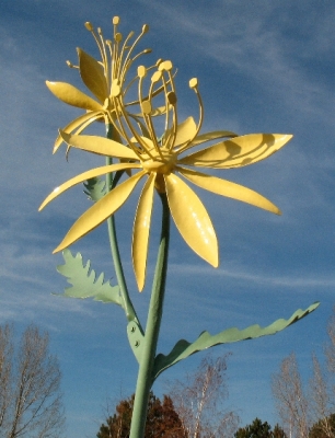 Artist team Jean Whitesavage and Nick Lyle created Giant Blazing Star as part of six large-scale, forged-steel sculptures. They placed the sculptures on a walking path in Connell, Central Washington. Each sculpture represents a different native prairie flower or local crop. They celebrate Connell's heritage of farming and close relationship to the land. Impressed by the expansive landscape, the artists noted, "it's big sculpture for big country."