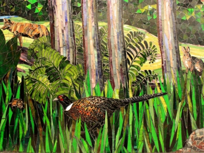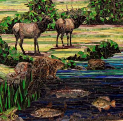 Husband and wife artist team Carl Bryant and Sandra Bryant create handmade mosaic artworks. They describe their work as celebrating "relationships between humanity and our environment, our human connections, how our experiences intertwine, our feelings over time and of the moment."