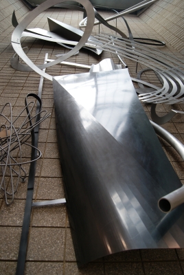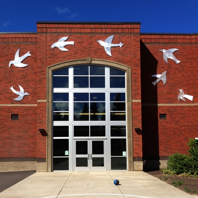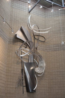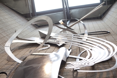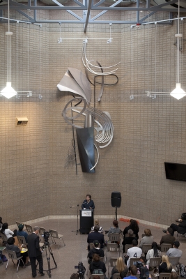 Virginia Paquette's "Velocity" was inspired by the work, strength, and energy she found at Columbia Basin College, where this artwork's form expresses those concepts and the momentum they engender.