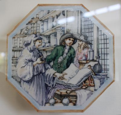 Seattle-based artist Maki Tamura explores the history of medicine during the 17th and 18th centuries, in "Healings," a five-part painted porcelain sculpture. This artist's renderings are based on paintings and engravings to pay homage to Abbe Nollet, Abraham Bosse, and Leonard Schenk.