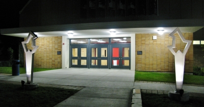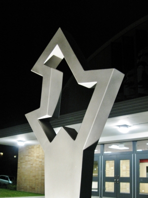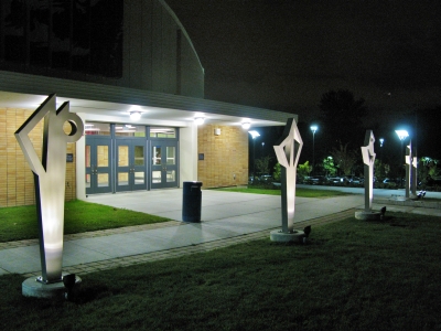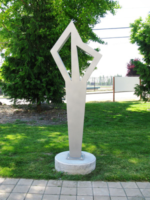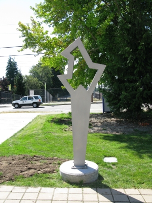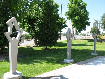Sentinels are a suite of six sculptures created by artist Juan Alonso-Rodríguez for Chief Sealth High School. The abstract figures act as guardians. They pay tribute to our ancestors, teachers, and protectors. Elements of his father's designs for his family house in Cuba inspired the geometric forms.