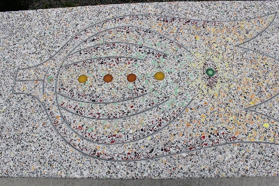Cross Sections is one of three terrazzo benches created by artist Norman Courtney for Clover Park Technical College in Pierce County, Western Washington. He installed the three benches in the courtyard of the Allied Health Building, along with four sculptural panels. Based on the themes of transformation and discovery, the benches and panels reference botanical illustrations of North American medicinal plants. The benches show the seedpods. Courtney notes, "Many medicinal plants that were being harvested and cultivated by the Indigenous Peoples of the Americas were taken back to Europe over the next couple of centuries, often the first treatments for existing illnesses there." The themes of transformation and discovery are also referring to the students who choose to transform their lives through the knowledge and training offered at Clover Park Technical College.