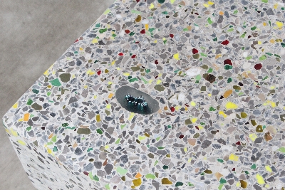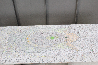 Cross Sections is one of three terrazzo benches created by artist Norman Courtney for Clover Park Technical College in Pierce County, Western Washington. He installed the three benches in the courtyard of the Allied Health Building, along with four sculptural panels. Based on the themes of transformation and discovery, the benches and panels reference botanical illustrations of North American medicinal plants. The benches show the seedpods. Courtney notes, "Many medicinal plants that were being harvested and cultivated by the Indigenous Peoples of the Americas were taken back to Europe over the next couple of centuries, often the first treatments for existing illnesses there." The themes of transformation and discovery are also referring to the students who choose to transform their lives through the knowledge and training offered at Clover Park Technical College.