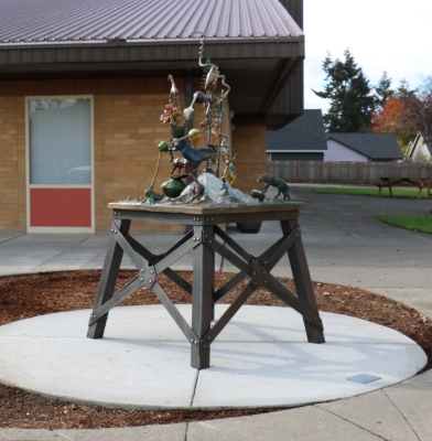 Eastern Washington artist Brad Rude creates narrative sculptures that feature various animals in playful, symbolically rich compositions. He notes, "I portray animals in situations that mimic our own lives. The animals are a stand in for us."Rude studied at the Maryland Institute College of Art and at Central Washington University in Ellensburg. He lives and works in Walla Walla, Southeastern Washington.