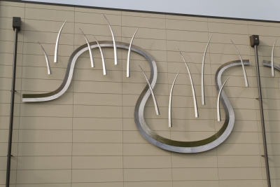 Flow is part of a sculptural installation by artist Paul Sorey, commissioned for Tahoma High School. It features bold curves of stainless steel that resemble a winding river and reeds. It connects to a companion sculpture, the free-standing 'Flower', via a curved river of dark-colored concrete at the building's entrance. Sorey's inspiration comes from the nearby Cedar River, which flows through Maple Valley and provides local drinking water. He notes, "A river flows; it shapes the landscape and lives in the minds and hearts of people who live near it. Young plants receive nourishment from the endless supply of water and minerals, enabling them to grow and mature. In much the same way an institution of learning nourishes hungry minds with a flow of information, ideas and experiences which help to bring about the flowering of each individual."