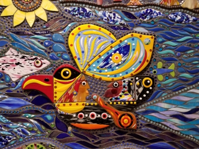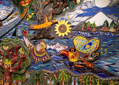 Mauricio Robalino creates colorful and whimsical artworks using a variety of materials, especially mosaics. His artworks are inspired by multicultural artistic traditions. In his own words, "My art is a celebration of life, nature, and hope."Robalino was born and grew up in Ecuador. He earned a Bachelor of Fine Arts degree from the San Francisco Art Institute in 1983 and a Master of Fine Arts degree from the University of California at Santa Barbara in 1988. He is based in Tacoma, Western Washington.