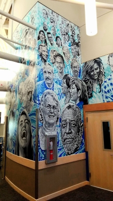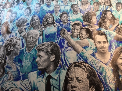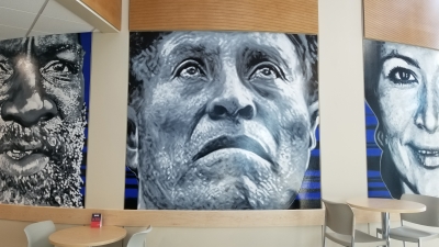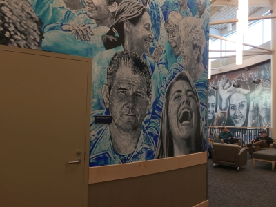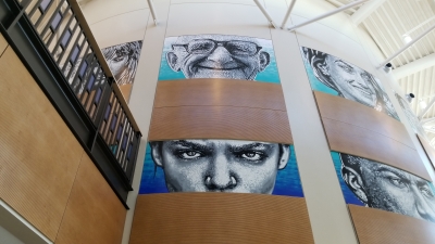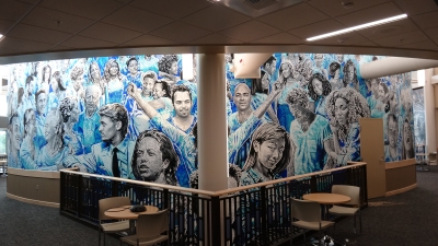 Infinite Humanity is a large-scale mural by artist Todd Benson. Approximately 170 feet long and 30 feet high, the mural wraps around a two-story circular core within the lobby of the Social Sciences and World Languages Building at Columbia Basin College. The artist describes the mural as an "explosion of humanity" which explores our defining spirit and world-wide connections.