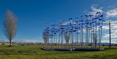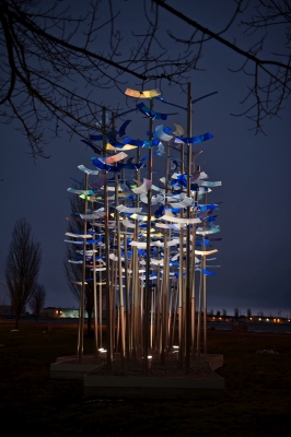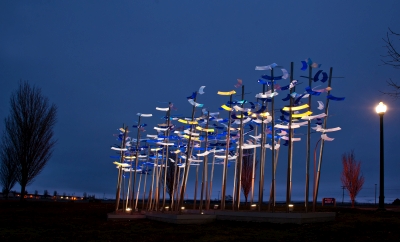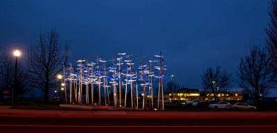 Illuminated Gateway Arbors is comprised of a total of 42 aluminum and acrylic tree-forms. It is one of two groupings by artist Koryn Rolstad located at the Walla Walla Regional Airport. The artist states that these works are "designed to emulate and honor the airport gateway concept and tie an image of nature and tree formations back to this growing agrarian-based economy... [the installations] are visually fresh and exciting each time that they are experienced, from day to night, presenting a gateway beacon for the Port of Walla Walla."