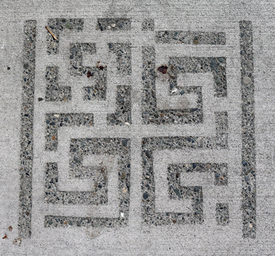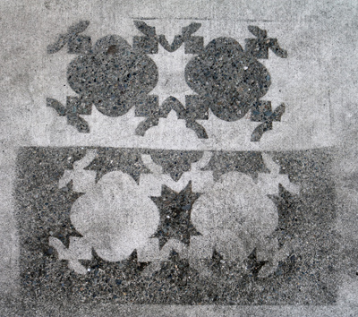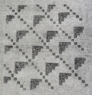 This artwork by artist Cecilia Alvarez is comprised of ten patterns sandblasted in concrete. It is part of her installation of art and architectural elements in the Student Activities Center at Seattle Central College. The patterns are located along the outdoor walkway by the college bookstore. Alvarez's imagery draws from motifs found in the following cultures: East Indian, Nez Perce (Northwest Native American), Samoan, Italian, Norwegian, German, Filipino, Nigerian, and Egyptian. She notes, “The intent of these patterns was not only to pay homage to the cultures represented, but to attempt to infuse the structures and the site with a sense of belonging and intimacy.”